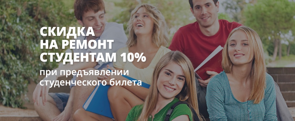 Вашему вниманию предоставляются не только качественные работы по устранению поломок, но и разумно продуманные доступные цены на работы. Для постоянных клиентов у нас существует специальная система скидок. К примеру, владельцы дисконтных карт, многодетные семьи, пенсионеры и студенты получают скидку 10% на все оказанные услуги, а участники Великой Отечественной войны — 20%
